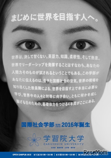 学習院は、3月30日付で2016年4月に開設を予定している学習院大学「国際社会学部(仮称)」の設置認可を、文部科学省に申請したと発表した。学習院大学にとって52年ぶりの新学部となる。