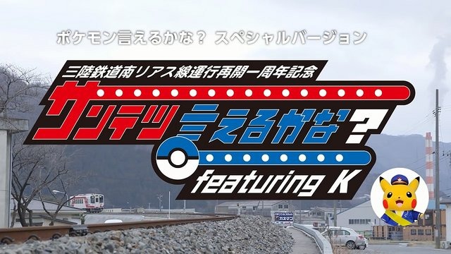 ポケモンは、東日本大震災の支援活動「POKEMON with YOU」公式サイトにて、三陸鉄道応援動画「サンテツ言えるかな?featuring K」を公開した。この動画は、2015年4月5日に三陸鉄道南リアス線が再開1周年を迎えることを記念して公開されたもの。