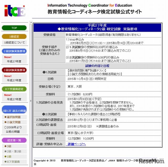 学校や高等教育機関など教育の情報化をコーディネートできる人材を認定する「教育情報化コーディネータ検定試験」が6月14日(3級)と10月4日(2級)、教育の情報化において実務的な役割を担う「ICT支援員能力検定試験」が6月14日に実施される。