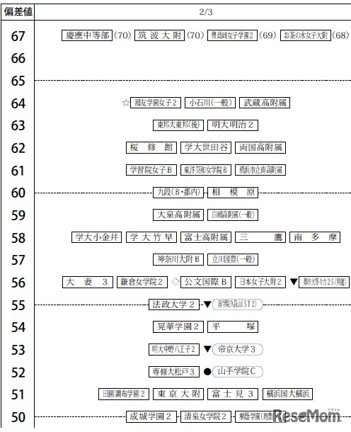 【中学受験2016】四谷大塚「第1回合不合判定テスト」偏差値一覧 8枚目の写真・画像