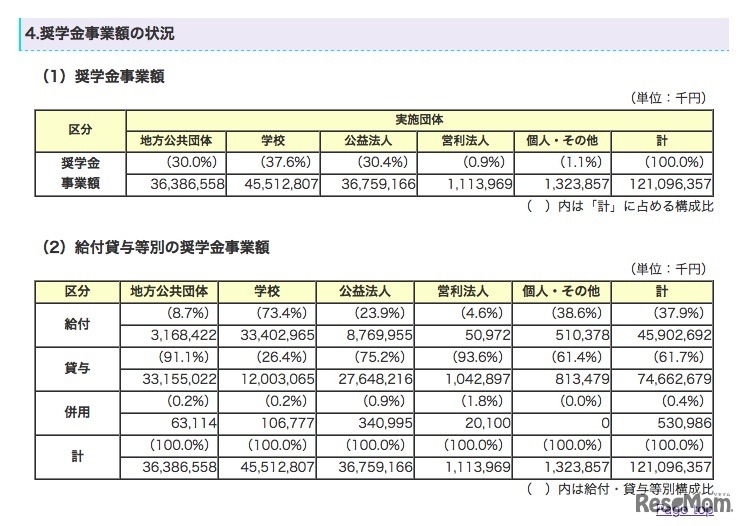 平成25年度の奨学生数は428,103人にのぼり、貸与制度の奨学生がもっとも多いことが、日本学生支援機構(JASSO)の調査から明らかとなった。実施団体では「学校」がもっとも多く、全体の6割近くを占めている。