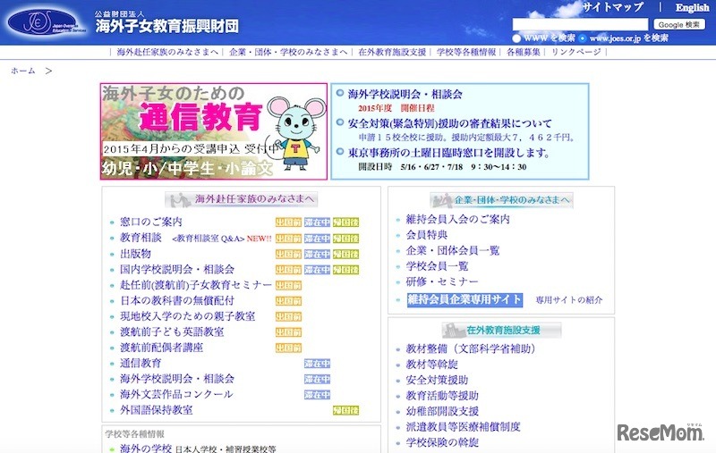 海外子女教育振興財団ホームページ