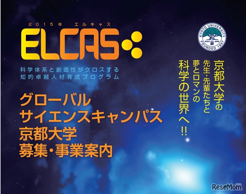 京都大学は、「グローバルサイエンスキャンプELCAS 2015年基盤コース」の受講生を募集している。対象は高校1・2年生。講座メンバーになると月2回、京都大学に通い、18分野に分かれた研究室で実験や実習を行う。