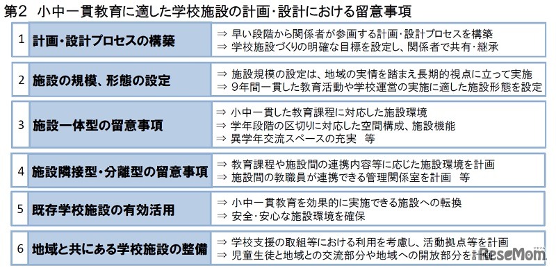 文部科学省は7月31日、「小中一貫教育に適した学校施設の在り方について~子どもたちの9年間の学びを支える施設環境の充実に向けて~」を公表した。施設環境を整えるためには、早い段階から関係者が参画し、理解と合意を図っていくことが重要だという。