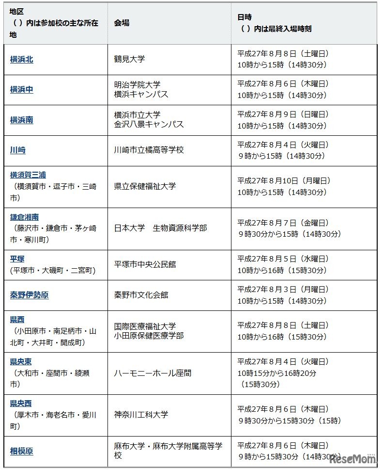 神奈川の高校展2015メインイベント「公私合同説明・相談会」が8月3日より8月10日まで県内12会場で開催されている。県内の公立・私立高校が地区ごとに12会場に分かれて各高校の魅力と特色をアピールする。入場無料で事前申込み不要、入退場自由。