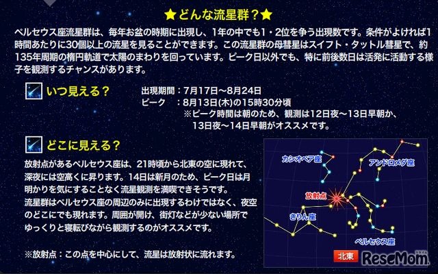 特設ページ「ペルセウス座流星群2015」