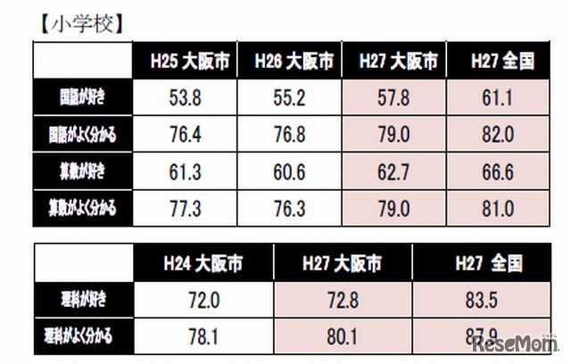 大阪市教育委員会は9月1日、4月に実施された平成27年度全国学力・学習状況調査(全国学力テスト)の結果概要を公表した。小中学校ともに全教科で全国平均を下回る結果になった。