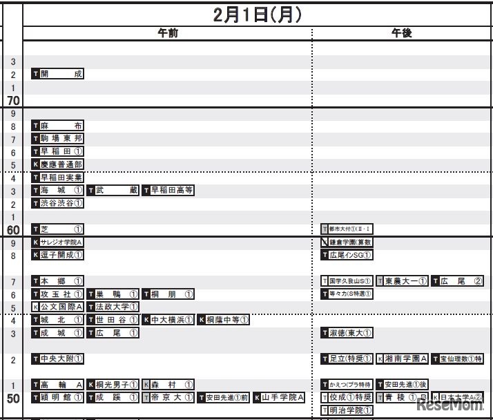 日能研は9月4日、「2015年中学入試 予想R4一覧」の首都圏8月21日版 をホームページに公表。合格可能性80%ラインは、筑波大駒場(73)、開成(72)、麻布(68)、桜蔭(70)、女子学院(68)、雙葉(66)などとなっている。