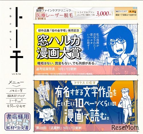 リイド社は、ドリヤス工場著のコミックス「有名すぎる文学作品をだいたい10ページくらいの漫画で読む。」を刊行した。収録作品の一部は、同社が発行するWebマガジン「トーチ」で、無料購読できる。