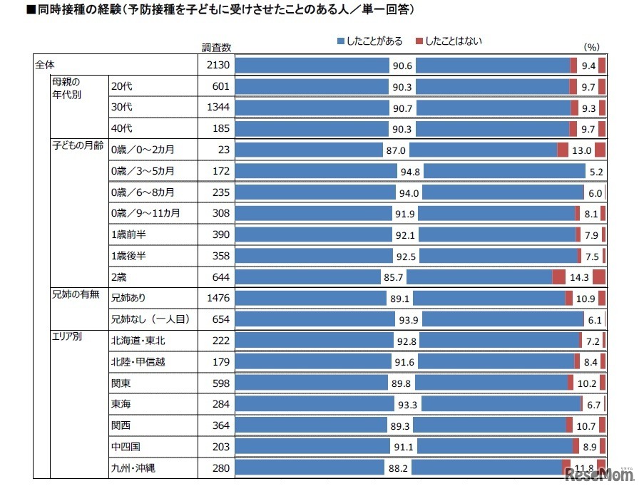 リクルートライフスタイルに設置された、出産・育児に関する調査・研究機関「赤すぐ総研」が、0~2歳の子どもを持つ既婚女性を対象に「乳児と母親の予防接種に関する実態調査2015」を行い、その結果を発表した。