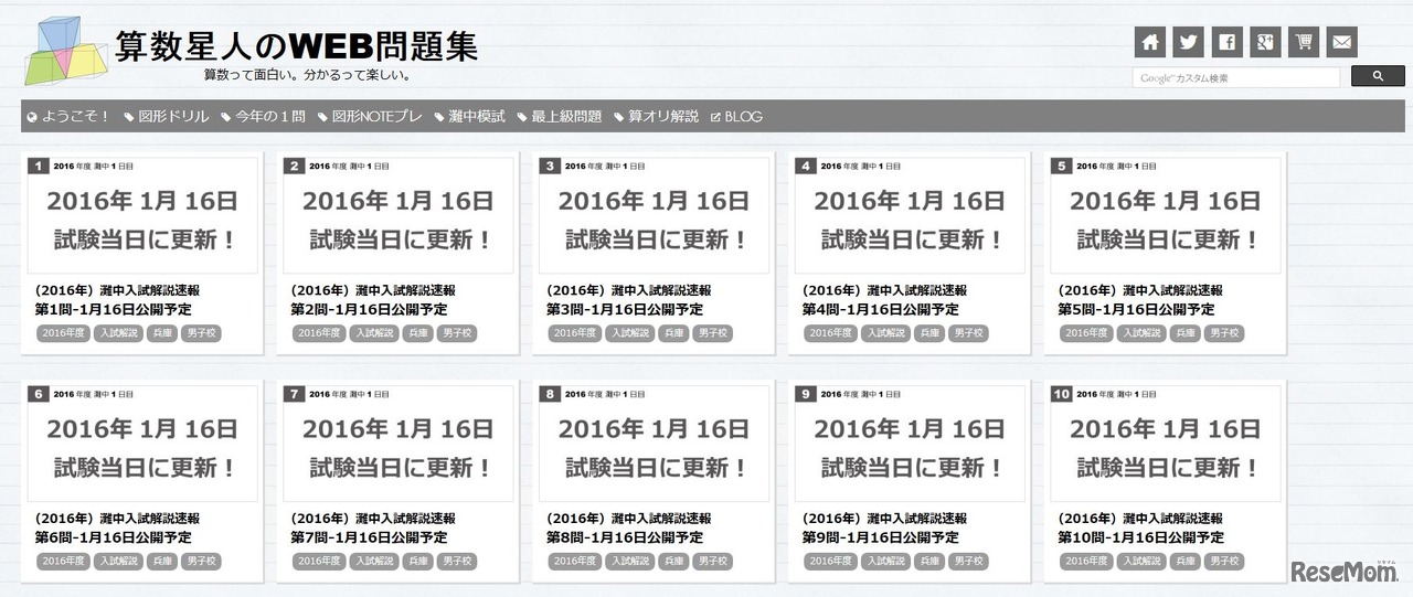 中学入試シーズンに入り、塾などでは難関中学校の入試問題や解答の公開を始めている。1月16、17日に行われる灘中学校の入試についても、特集サイトなどで速報がいち早く紹介されることになっている。