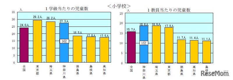 神奈川県は1月15日、学校基本調査結果を公開した。学校数や在学者数、卒業者数など学校に関する事項を県が独自に集計・収録。小学校の児童数は6年連続で減少しているものの、小学校の1学級あたりの児童数は全国平均を上回り、全国3位の多さだった。