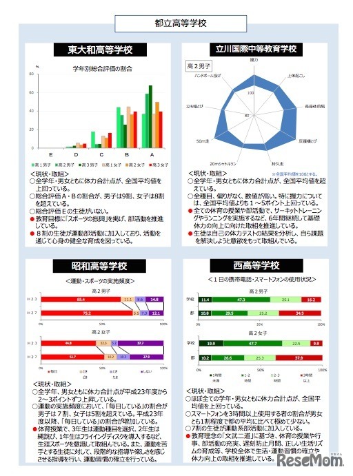 東京都教育委員会は1月28日、都内公立学校の全児童・生徒を対象とした「平成27年度東京都統一体力テスト」の結果を分析し公表した。体力・運動能力調査では、中学生・高校生がすべての種目において、全国平均を下回る結果となった。