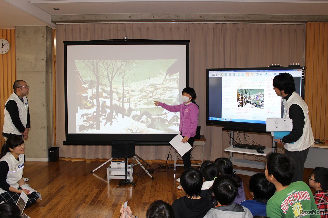 大日本印刷(DNP)は2月1日、教育CSR活動の一環として茨城県つくば市立春日小学校でデジタル教材を利用した美術鑑賞の出張授業「絵の中を探検しよう!美術鑑賞入門」を行った。