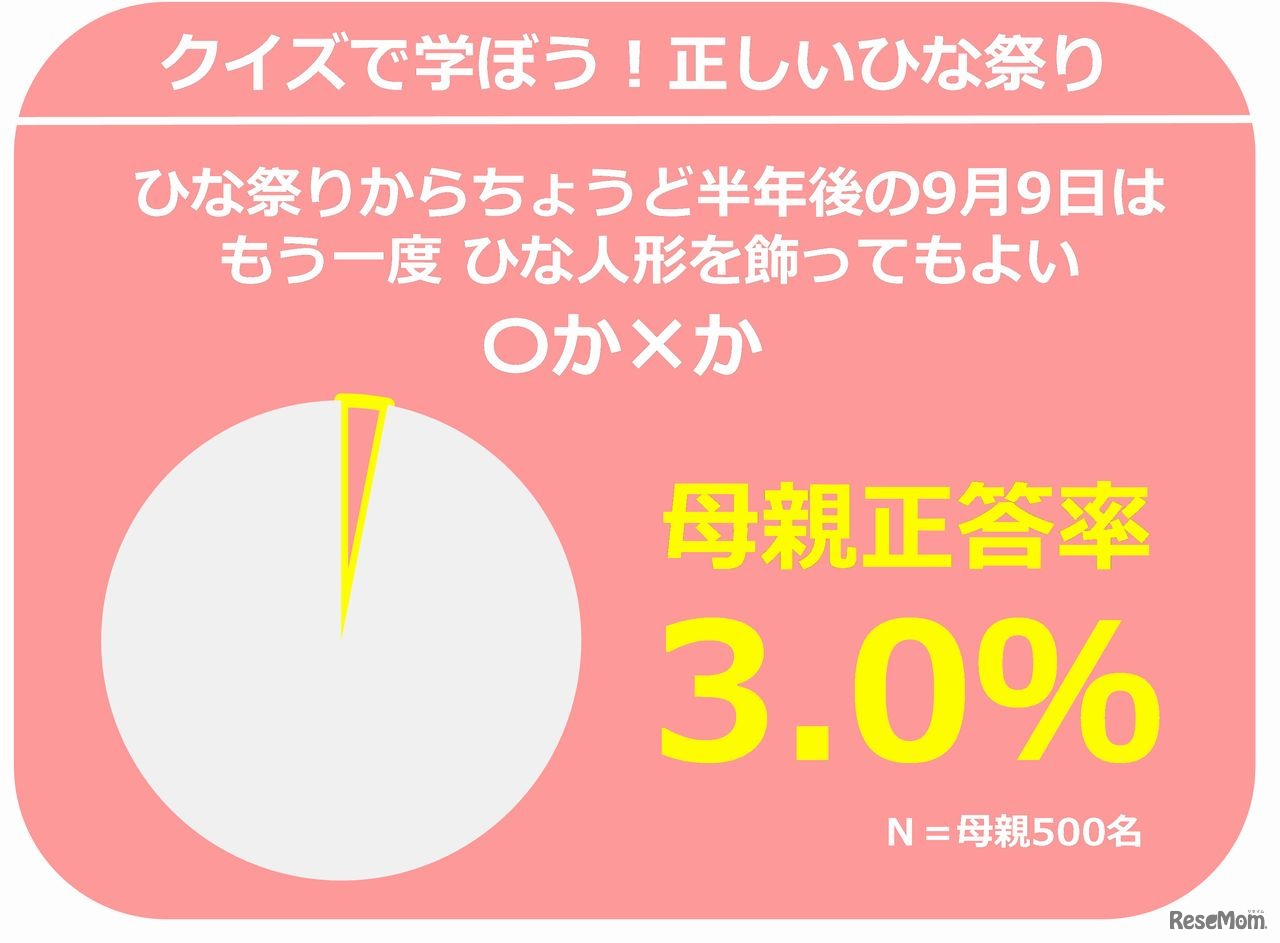 日本人形協会は2月16日、「節句と節句人形に関する意識調査」の結果を発表した。0~5歳の子供を持つ20~40代の既婚女性500名に正しい「桃の節句」の知識を尋ねたところ、「子どもはひな人形を触った方がよい」ことを知っている母親はわずか6.4%だった。
