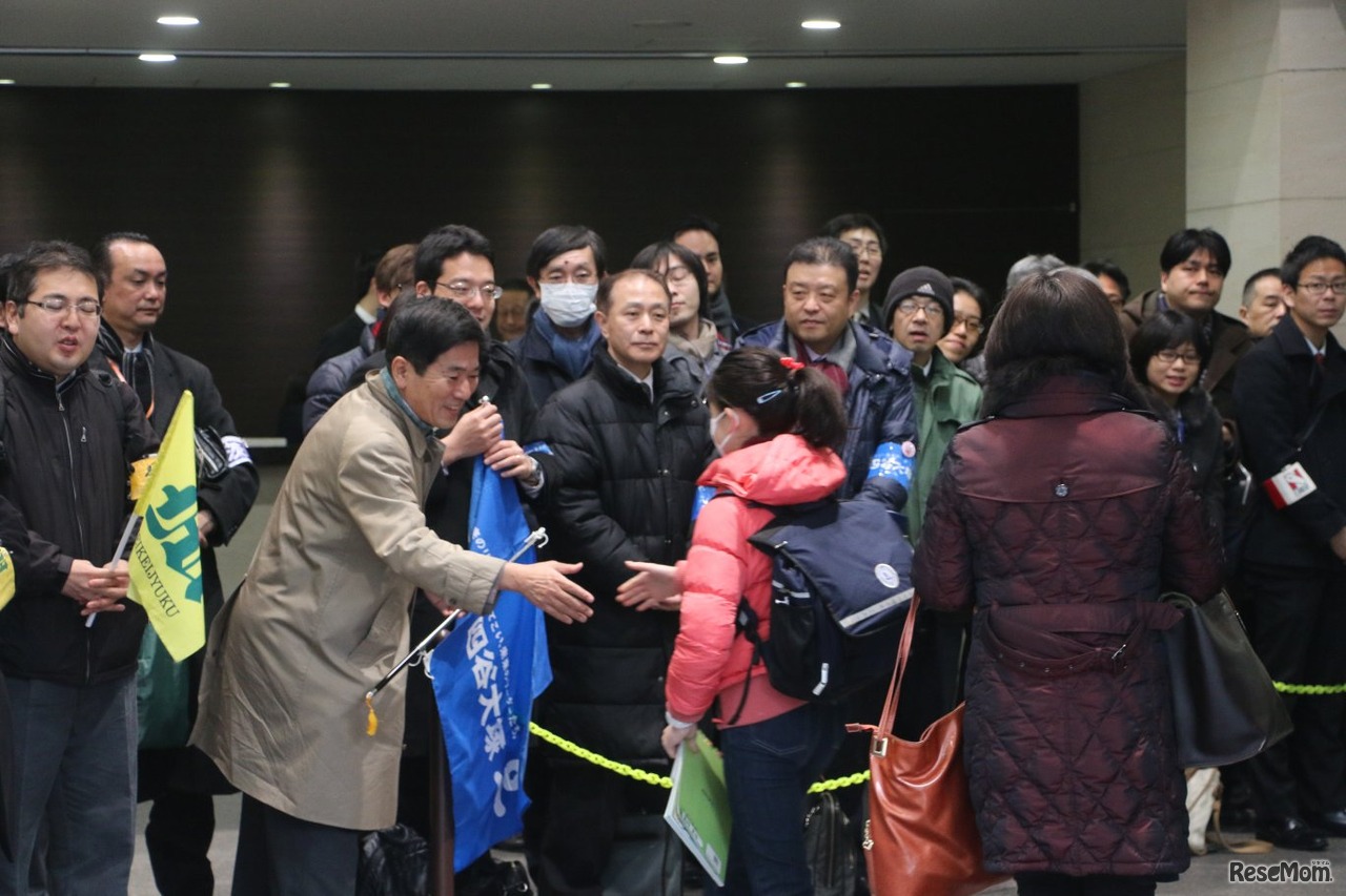 広尾学園2016年の中学入試のようす。大手塾が駆けつけ、受験生を励ましていた