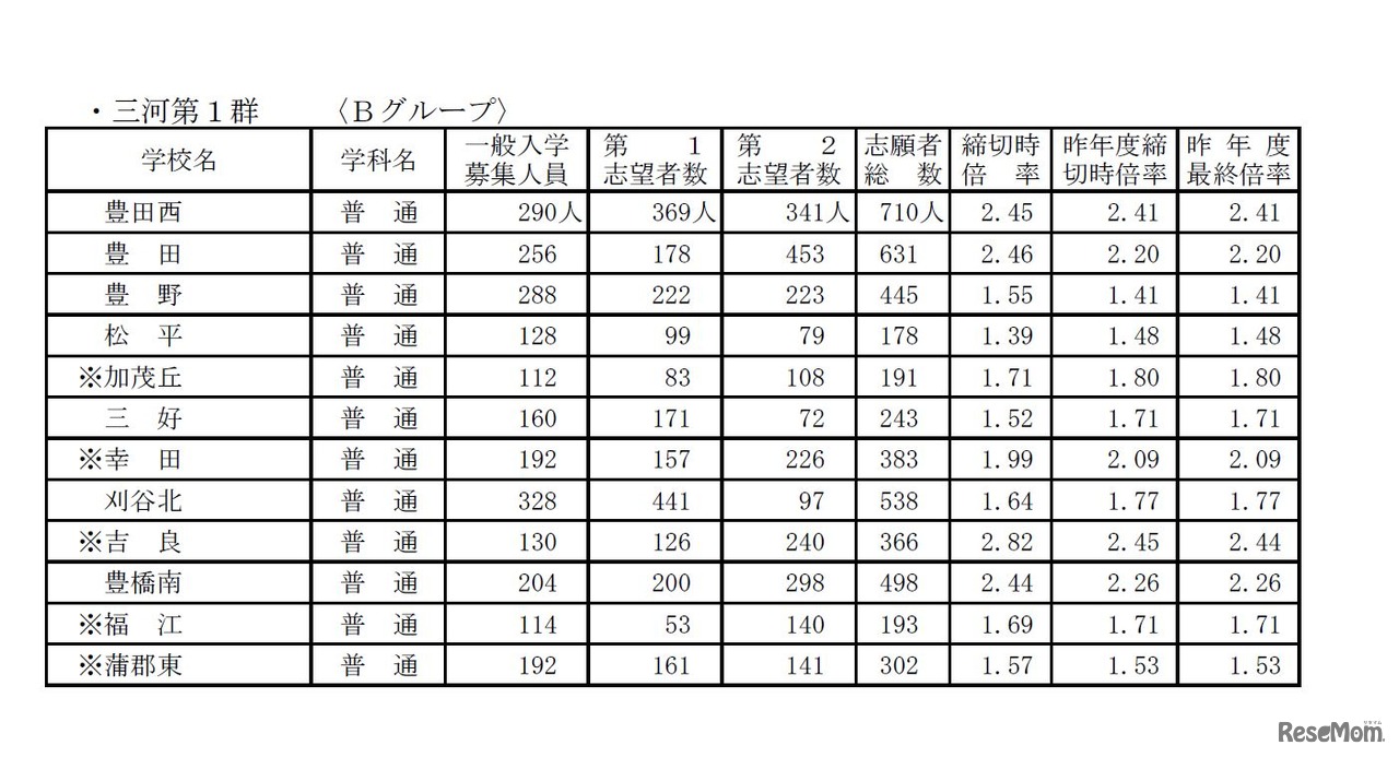 愛知県は2月24日、平成28年度愛知県公立高等学校入学者選抜の志願状況や倍率を公表した。全日制課程普通科通学区域は尾張学区と三河学区に分けられ、各高等学校は地区ごとにAグループとBグループに区分される。