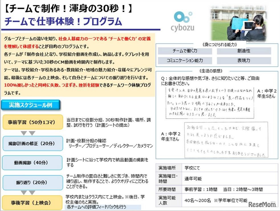 ソフトウェア開発のサイボウズは、JTBと業務提携し、中高生にチームワークを教えるプログラム「チームワーク研修」の提供を開始した。今後全国の中学や高校でプログラムを実施していくという。