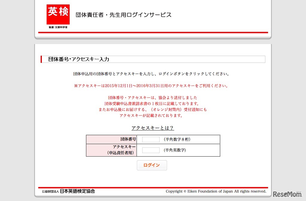 日本英語検定協会は3月1日、ホームページにて「2015年度第3回実用英語技能検定二次試験」の合否閲覧サービスを開始した。午後2時より団体向けの、午後3時より個人向けの閲覧を開始する。閲覧には、本人確認表に記載されている英検IDとパスワードが必要。