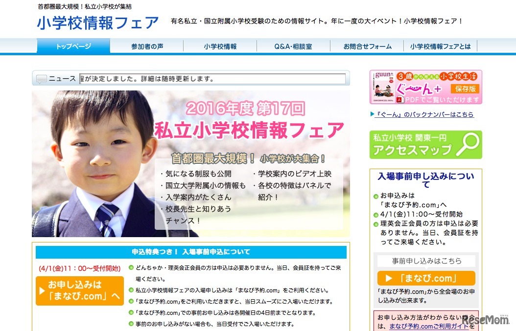 【小学校受験2017】首都圏最大規模「私立小学校情報フェア」5/15スタート 1枚目の写真・画像