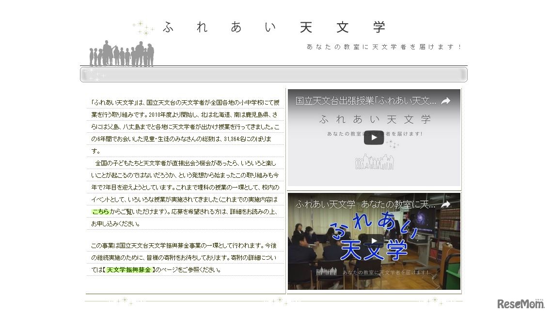 国立天文台は、天文学者が全国の小中学校へ出向いて授業を行う出張授業「ふれあい天文学」の実施校を募集している。対象は、日本国内の小学校(4年生以上)と中学校。実施期間は、10月から2017年2月までの予定。5月31日まで応募を受け付けている。