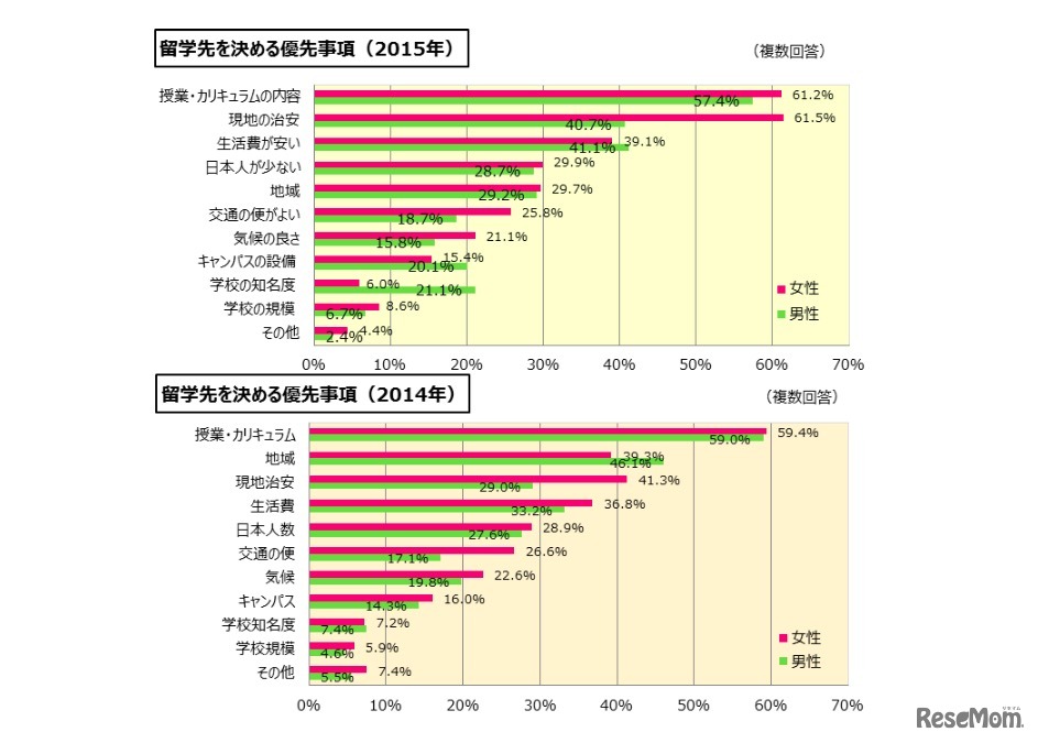 留学先を決める際の優先事項(留学白書2016 留学ジャーナル調べ)
