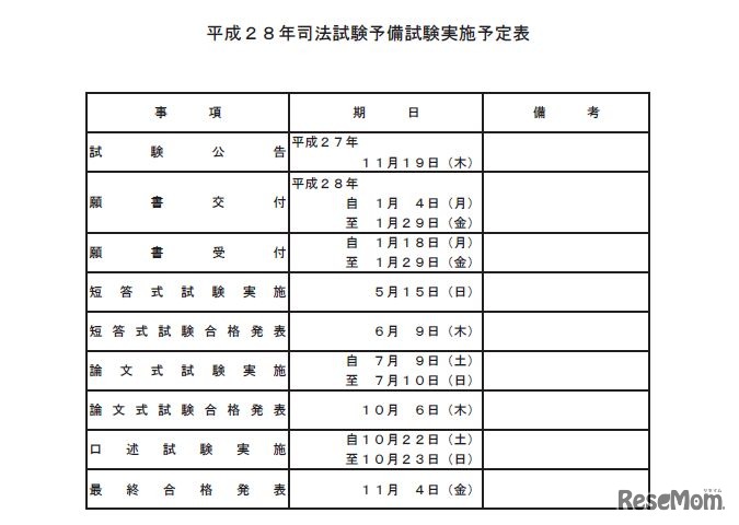 法務省は4月18日、平成28年熊本地震の発生に伴い、平成28年司法試験および司法試験予備試験で、福岡市を試験地として希望した受験者に試験地の変更を認めることを決定した。4月27日までに指定の様式または電話による申請が必要。