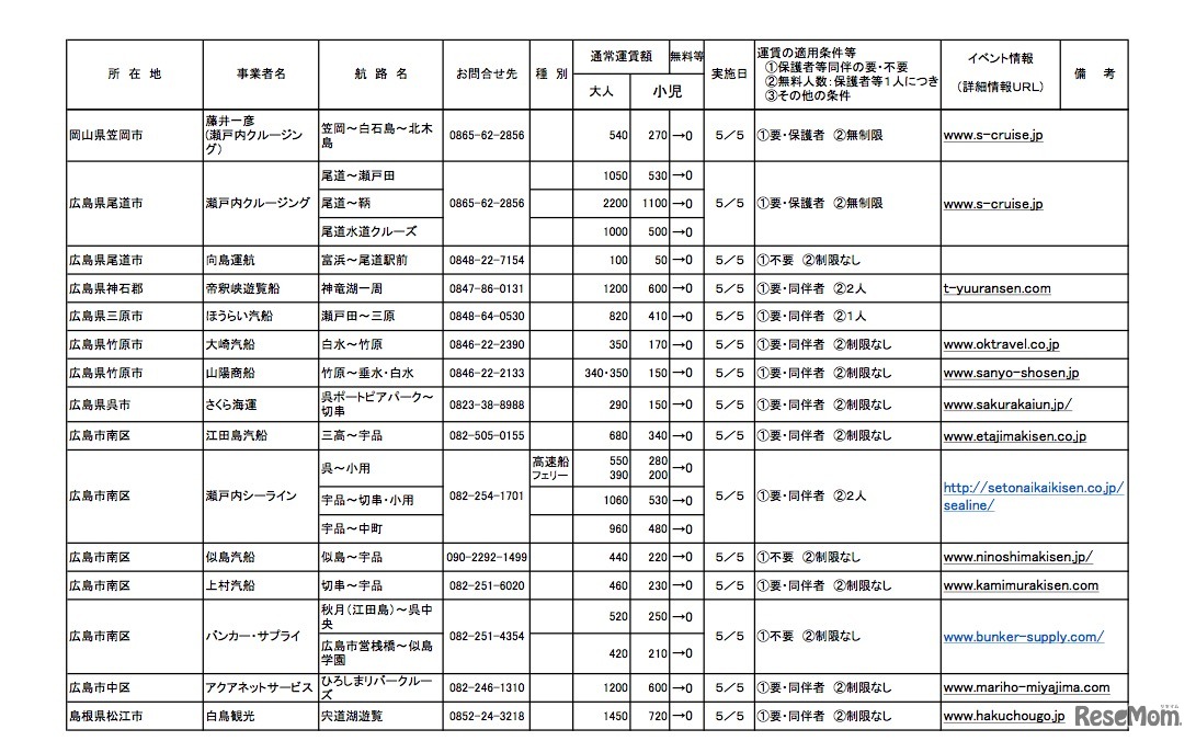 【GW2016】全国80航路、こどもの日「小学生乗船無料」キャンペーン 5枚目の写真・画像