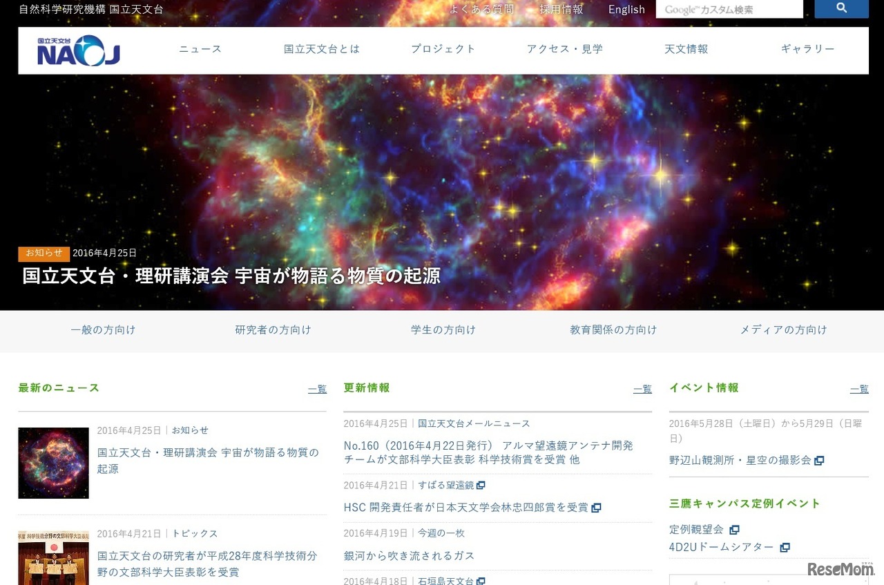 総合研究大学院大学物理学研究科天文科学専攻と国立天文台は、天文学に関心を持つ大学生と大学院生を対象とした特別公開講演および入試ガイダンスを開催する。開催日は関西地区(京都府京都市)が5月14日、関東地区(東京都三鷹市)が5月21日で、参加費無料。