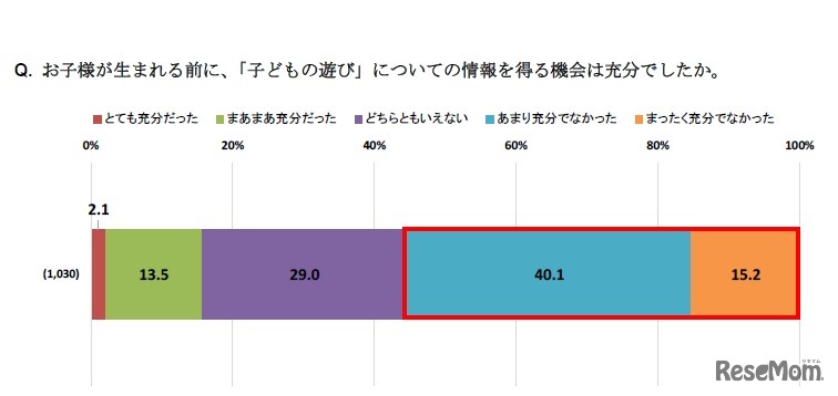 子どもが生まれる前に、「子どもの遊び」についての情報を得る機会は十分だったか