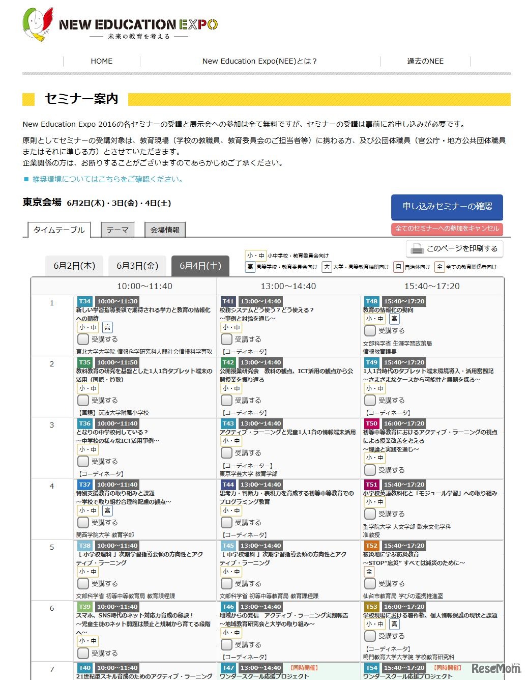 New Education Expo(ニューエデュケーションエキスポ、NEE)実行委員会は、4月28日から東京会場のセミナー申込みを開始した。タイムテーブル、またはテーマから申し込みできる。