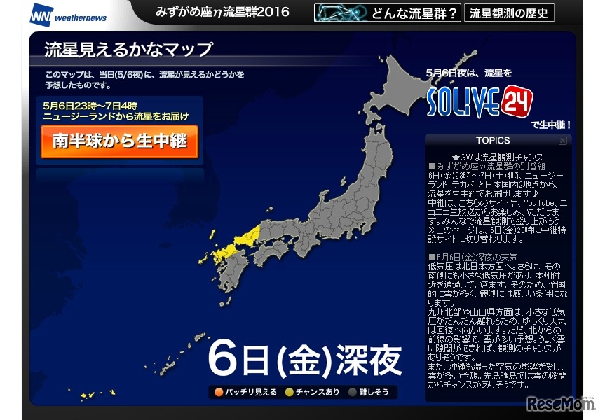 ウェザーニュース(PC向け)「みずがめ座η流星群2016」