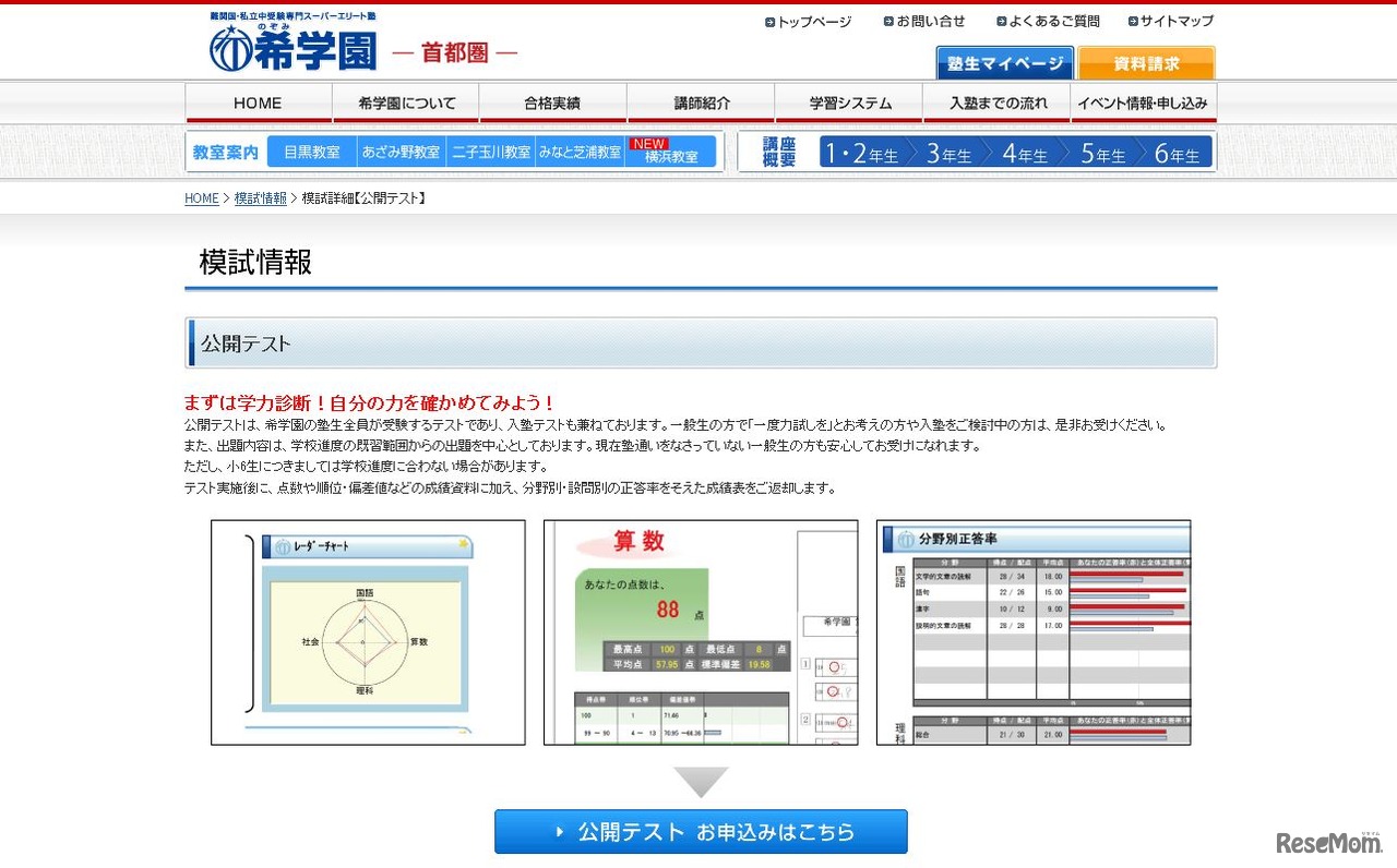 希学園(首都圏)の「公開テスト」