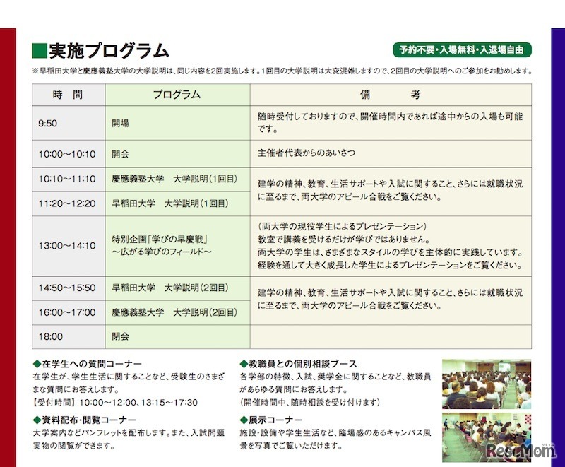 早稲田大学と慶應義塾大学、永遠のライバルともいえる2大学が合同説明会を開催する。金沢・富山・大阪の3会場にて、大学別概要説明会や教職員との個別相談を実施。大阪会場では特別企画「学びの早慶戦」も行われる。事前申込みは不要で、当日は入退場自由・入場無料。