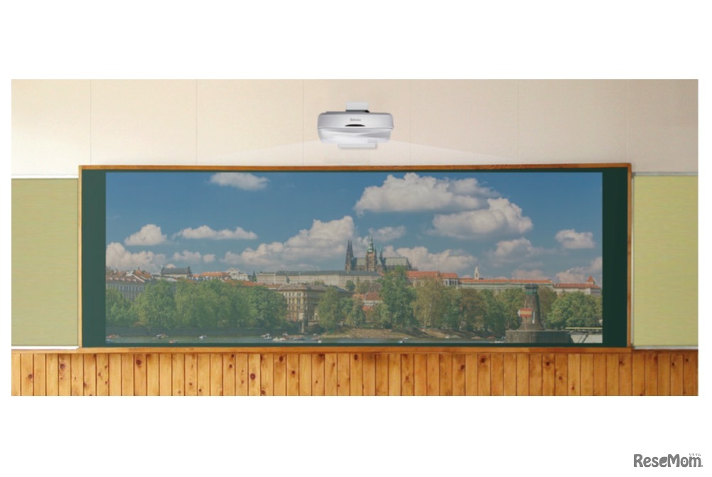 黒板メーカーのサカワは、一般的な黒板に“ほぼいっぱい”の映像を投影できるウルトラワイド超短焦点プロジェクター「ワイード」を、6月中旬に発売すると発表した。価格はオープンで、市場想定価格は45万円前後。