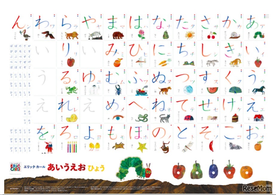 学研ホールディングスグループの学研教育みらいは、世界中で愛読されている絵本「はらぺこあおむし」の著者エリック・カールのアートを使用した幼児向け学習表シリーズを、5月24日より全国の書店にて発売した。「あいうえおひょう」など3タイプを展開する。