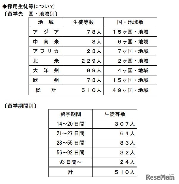 文部科学省と日本学生支援機構は5月25日、平成28年度官民協働海外留学支援制度~トビタテ!留学JAPAN 日本代表プログラム・高校生コースの選考結果を発表した。応募者2,057人のうち、510人が採用された。