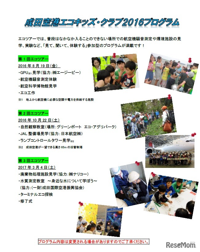 成田空港エコキッズ・クラブ2016プログラム