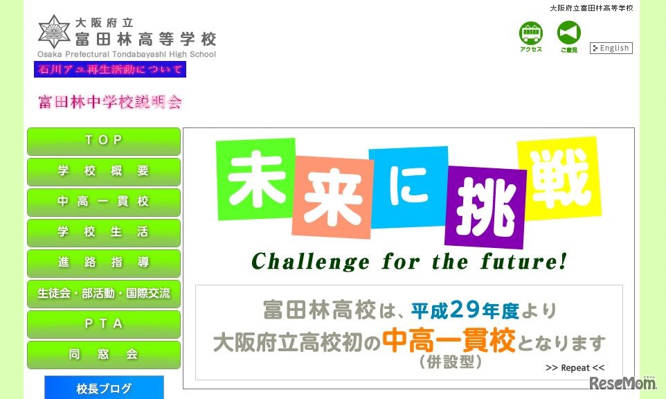 2017年4月に大阪府立初の併設型中高一貫校として開校する「大阪府立富田林中学校」の学校説明会が、6月25日にすばるホールにて開催される。当日は2回の開催で、定員は各回600人。参加申込受付は6月1日より開始する。