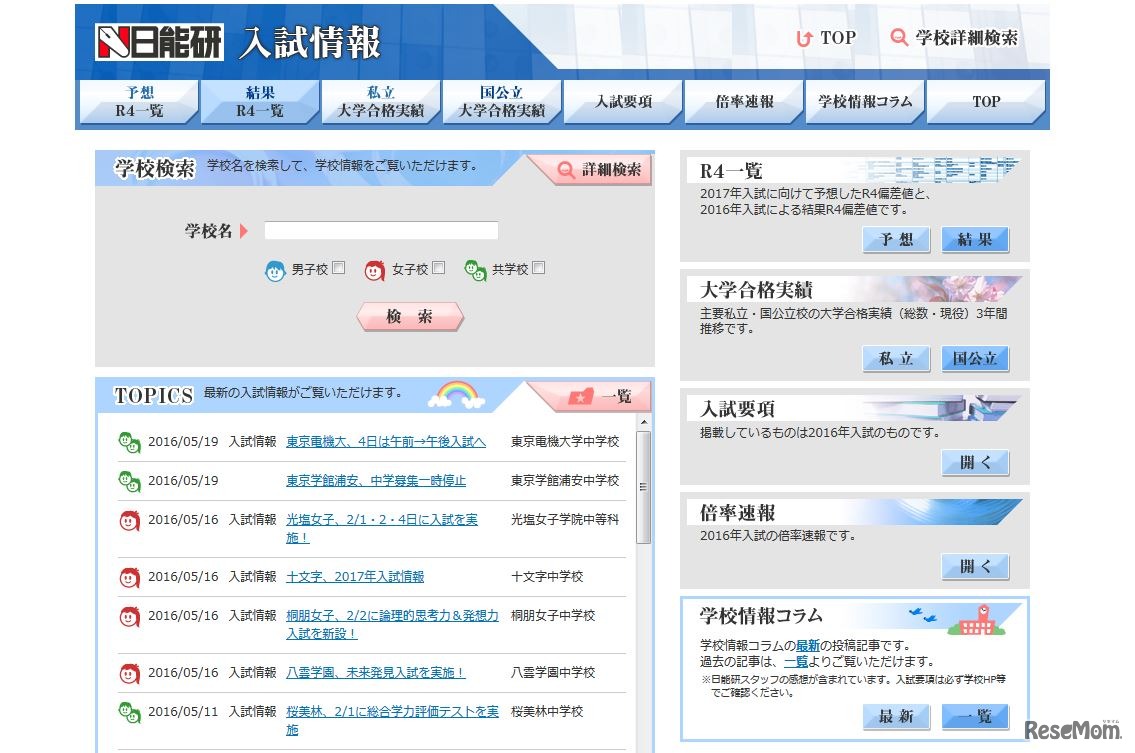 日能研は5月27日、「2017年中学入試 予想R4一覧」の首都圏5月13日版をホームページに公表した。男女別に合格可能性80%ラインを一覧表にしてまとめている。難関校の合格可能性80%ラインは、筑波大駒場(73)、開成(72)など。