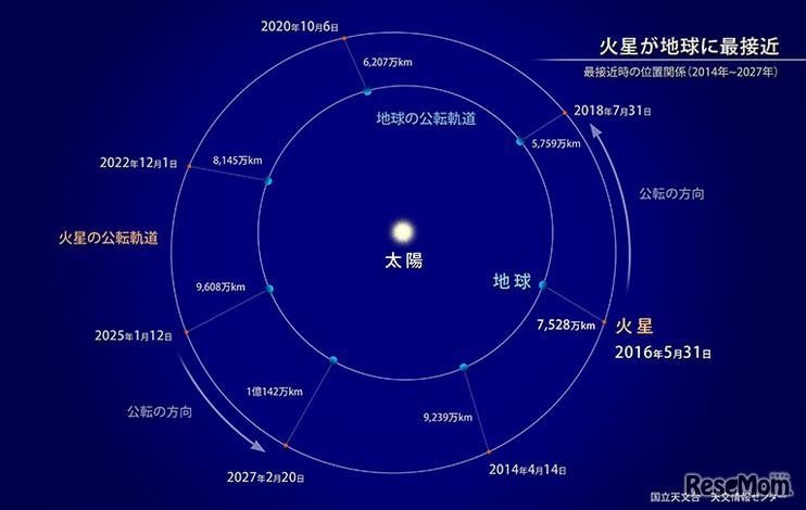 5月31日は火星が地球に最接近する「スーパーマーズ」観察チャンスの日。火星と地球が最接近するのは約2年2か月ぶり。赤い星としても知られる火星は明るいため、天候がよければ肉眼でも美しい姿を眺めることができるという。見える方角や観察のヒントを紹介する。