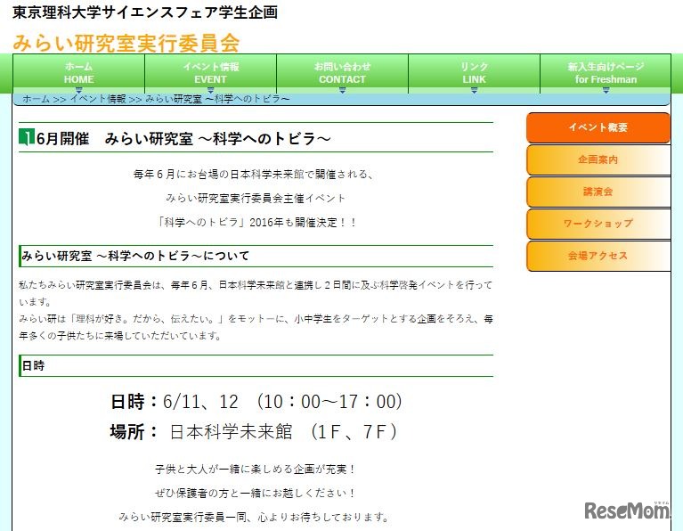 小中学生をおもな対象とした科学体験イベント「科学へのトビラ」が6月11日と12日、日本科学未来館で開催される。物理や化学などをテーマとした多彩な実験や体験が企画されており、子どもから大人まで楽しむことができる。入場無料。