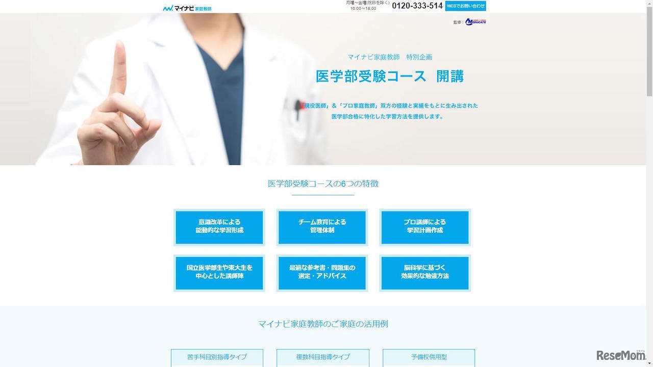 マイナビが運営する「マイナビ家庭教師」は、医学部受験を目指す中学1年生から浪人生を対象とした「医学部受験コース」を新設した。現役医師がコースを監修、医学部生や東大生など現役難関大生が講師を務め、チーム教育で医学部受験をサポートする。