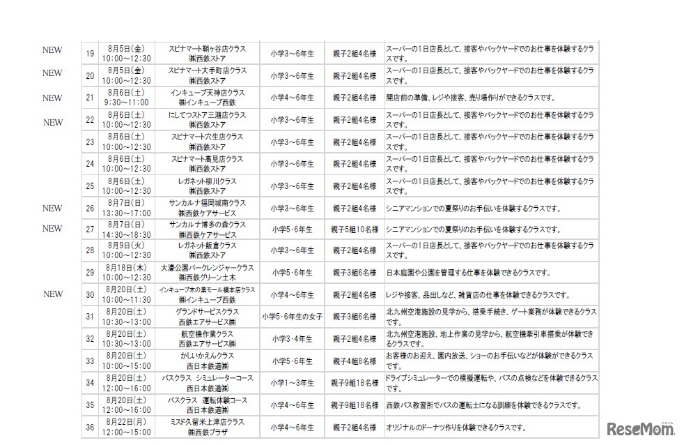 西日本鉄道は7月23日~8月22日、西鉄グループのさまざまな職業プログラムを体験する「にしてつキッズしごと体験スクール」を開催する。電車運転士やホテルパティシエなど36クラスを開催。小学生親子115組を募集している。参加費は無料。