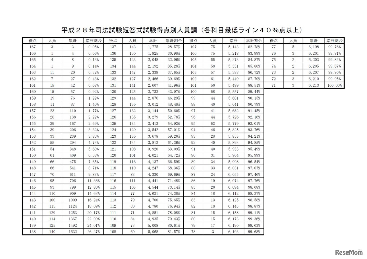 H28年度司法試験短答式試験結果、合格得点や平均点を公表 3枚目の写真・画像