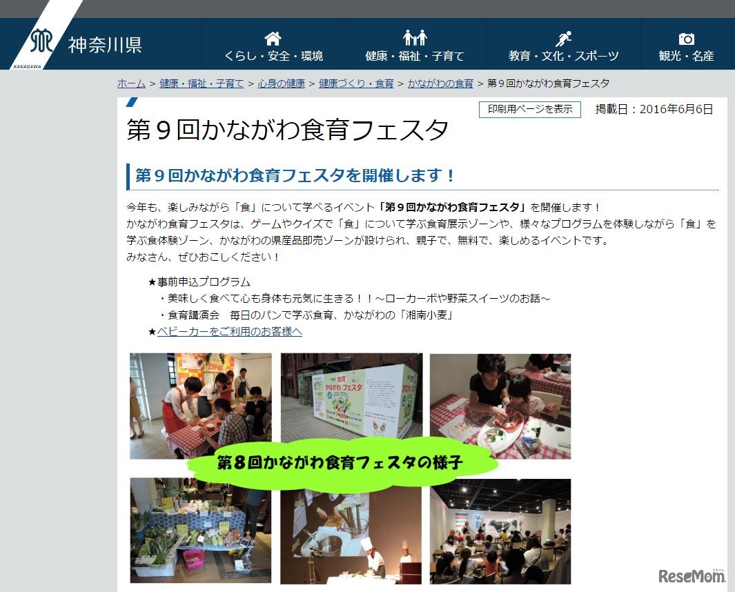 神奈川県は、健康寿命延伸に向けた取組みの一環として、体験を通して楽しみながら食育にふれることのできるイベント「第9回 かながわ食育フェスタ」を7月28日に横浜赤レンガ倉庫にて開催する。食体験プログラムや食育講演を入場無料で楽しむことができる。