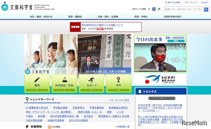 文部科学省は6月1日付けで、各都道府県の知事・教育委員会らに向けて教職員などの選挙運動の禁止に関する通知を行った。今夏の参議院選挙から選挙権年齢が18歳以上に引き下げられることを踏まえ、学校の政治的中立の確保や関連法令の適切な理解を求めている。