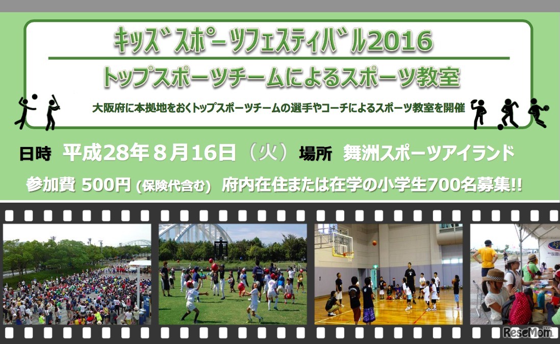 大阪府は、府内のトップスポーツチームの選手やコーチらが直接指導するスポーツ教室「キッズスポーツフェスティバル2016」を8月16日に開催。参加者として大阪府在住および在学の小学生700名を募集する。