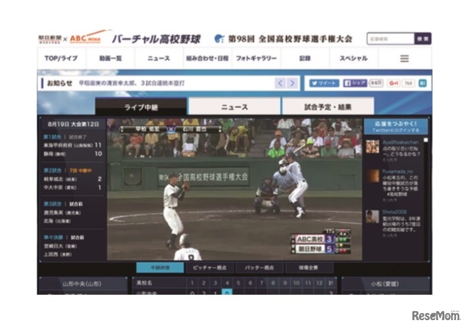 朝日新聞社は朝日放送と共同で、第98回全国高校野球選手権大会の中継映像をLIVE配信する高校野球の総合情報サイト「バーチャル高校野球」を6月8日に開設した。今年は全国大会の全試合をLIVE配信するほか、地方大会決勝のLIVE配信を大幅に増やして配信する。