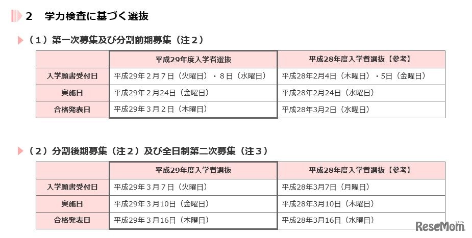 東京都教育委員会は6月9日、平成29年度東京都立高等学校入学者選抜の日程を公表した。推薦入試は平成29年1月26日と27日、一般募集の学力検査は2月24日に実施する。